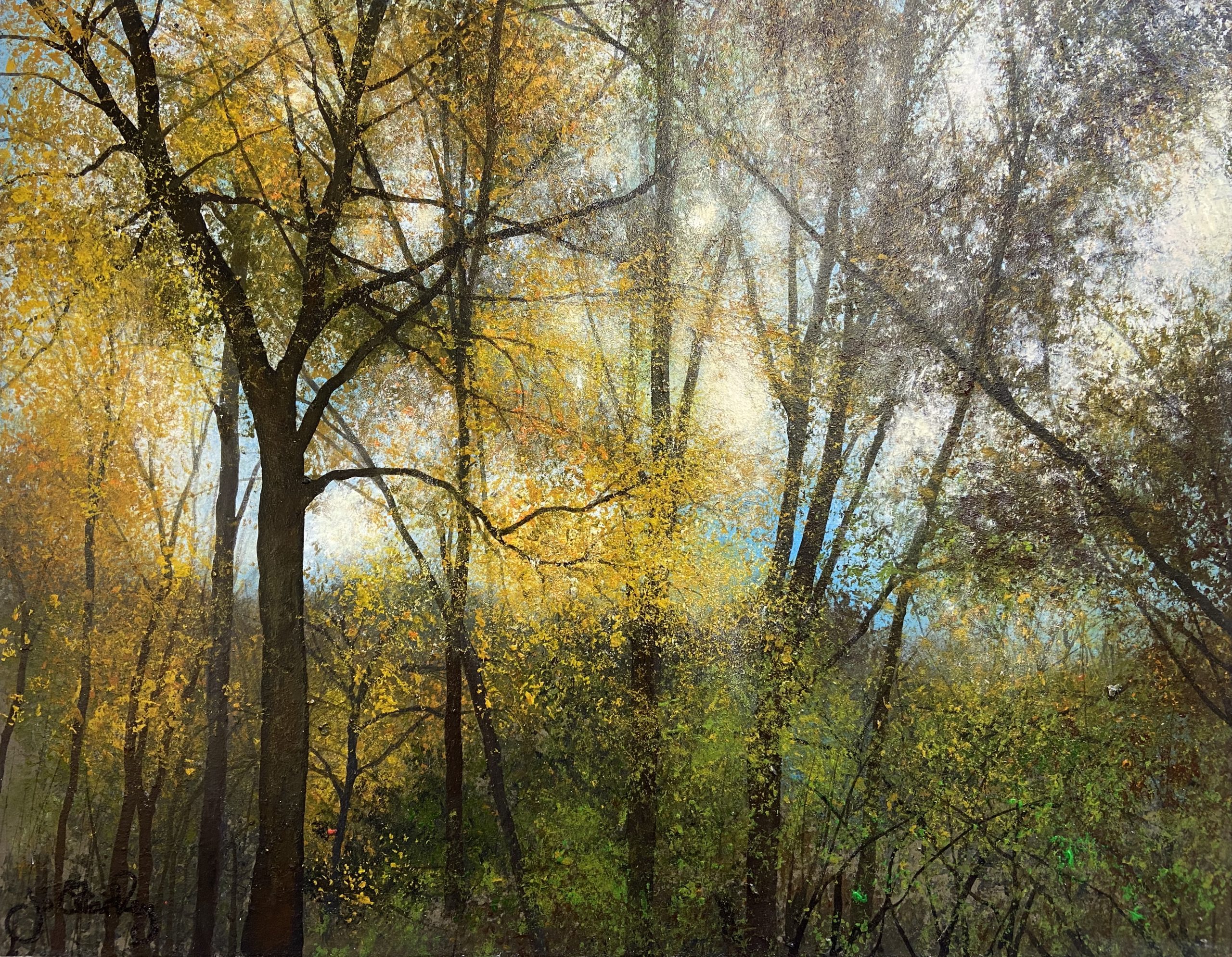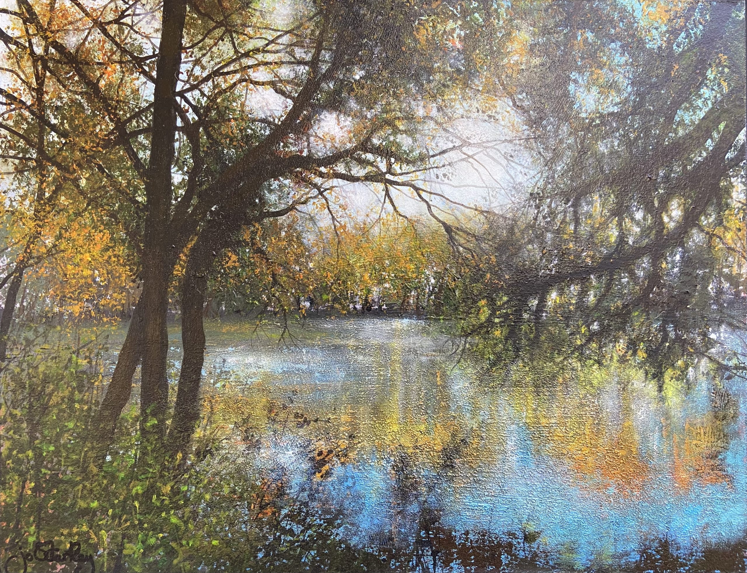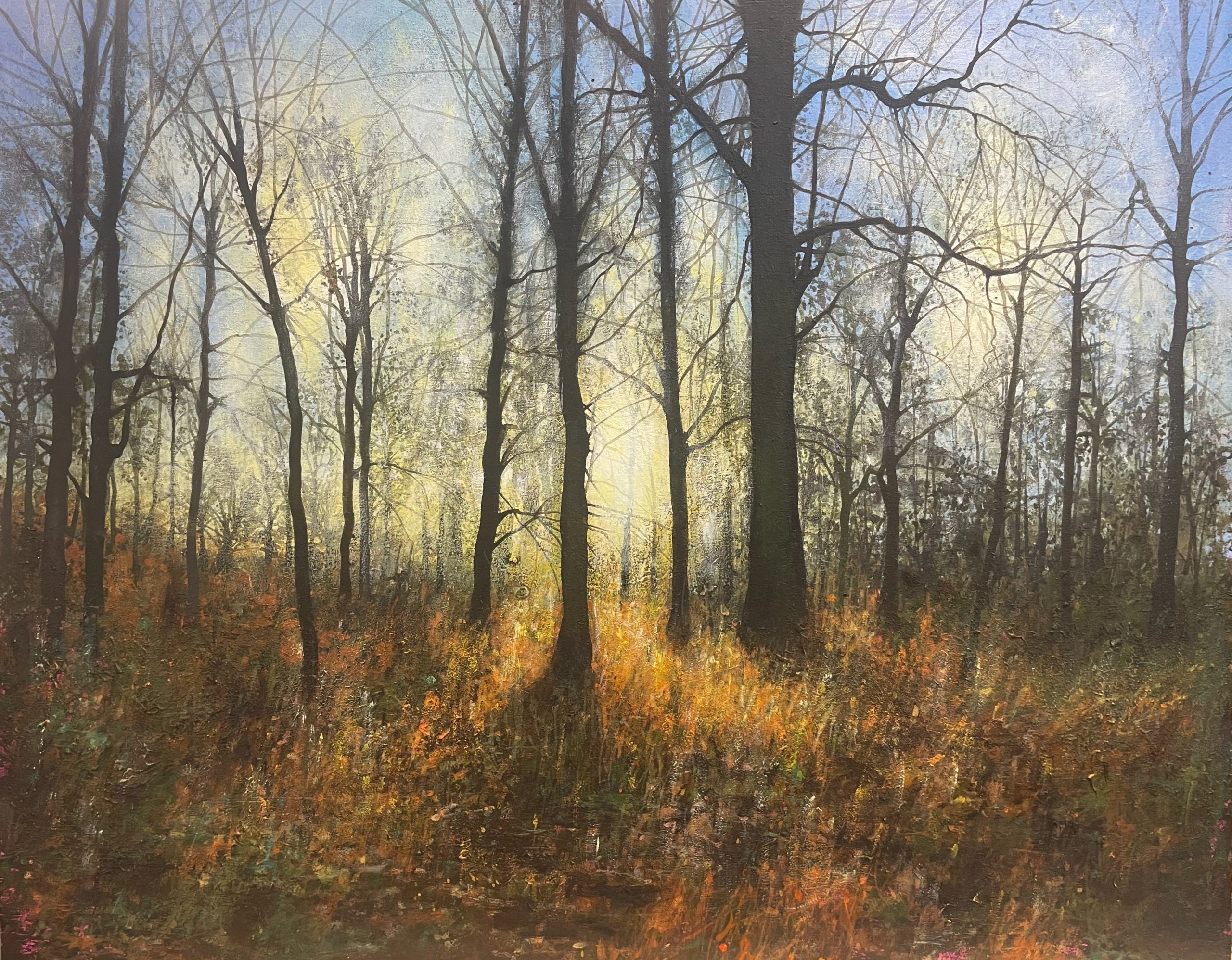 Inspired by the English countryside as it begins to flourish, this composition reflects the season in transition — meadows alive with colour, trees newly in leaf casting dappled shade, and soft sunlight filtering through branches to create depth, warmth and atmosphere.